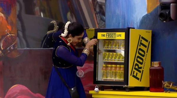உள்ளே நுழைந்த உடனேயே தண்ணீர் பாட்டிலை எடுத்து தண்ணீர் குடித்தார். பின்னர் மினி சைஸ் லாரி போன்று அமைக்கப்பட்டிருந்த கிச்சனில் பூட்டப்பட்ட ஃபுரூட்டி ரேக்கை திறக்க முயற்சித்து சேதப்படுத்தினார்.