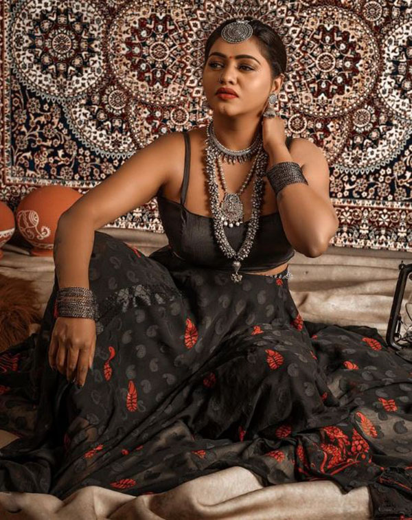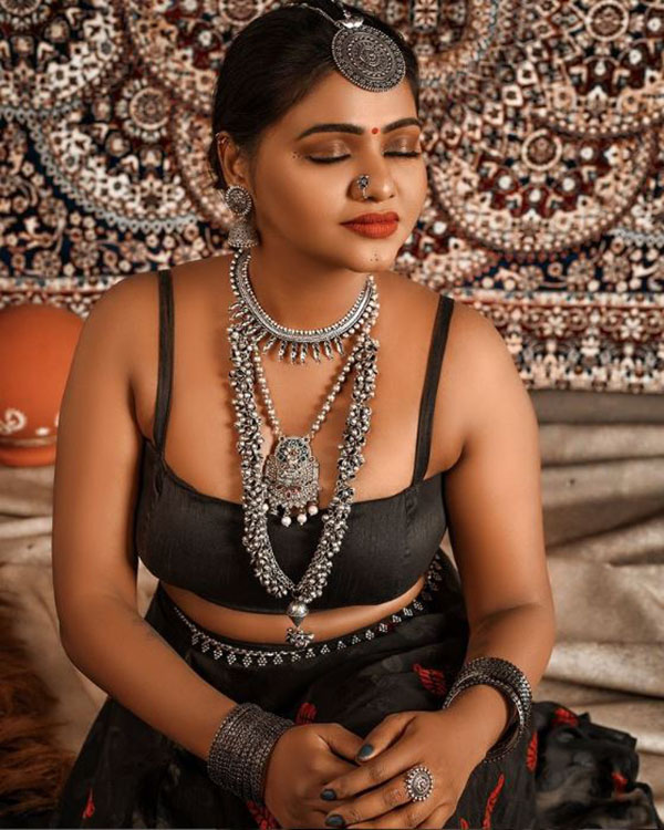 பிக் பாஸ் நிகழ்ச்சிக்கு இவர் வருவார் என ஒவ்வொரு சீசனும் ரசிகர்கள் எதிர்பார்த்து காத்திருந்தாலும், அனைவருக்கும் அல்வா கொடுத்து வரும் ஷாலு ஷம்மு இன்ஸ்டாகிராம் மூலமாகவே ரசிகர்களை மூடேற்றும் வேலைகளை தொடர்ந்து செய்து வருகிறார். கருப்பு நிற கவர்ச்சி உடையில் ஏகப்பட்ட நகைகளை அணிந்து கொண்டு செம கும்தாவா போஸ் கொடுத்து இளைஞர்களின் ஹார்ட் பீட்டை எகிற வைத்து வருகிறார்.