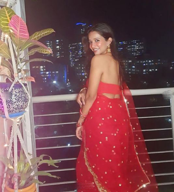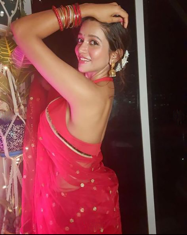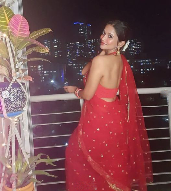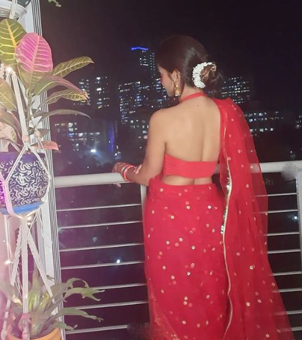 அந்தவகையில் தற்போது தீபாவளி பண்டிகையை கொண்டாடும் விதமாக சிவப்பு நிற சேலையில் பின்னழகை காட்டி கவர்ச்சி போஸ் கொடுத்து ரசிகர்களை சூடேற்றியுள்ளார்.
