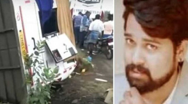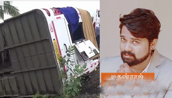 அப்போது திடீரென ஓட்டுநரின் கடடுப்பாட்டை இழந்த பேருந்து சாலையோரம் தலைக்குப்பிற கவிழ்ந்தது. இதில் நடிகர் மதன்ராஜ் சம்பவ இடத்திலேயே பரிபாதமாக உயிரிழந்தார். மேலும் படுகாயம் அடைந்த 15-க்கும் மேற்பட்டோர் உடனடியாக அரசு மருத்துவமனைக்கு சிகிச்சைகாக கொண்டு செல்லப்பட்டனர்.