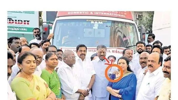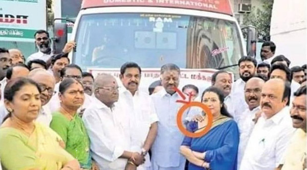 அப்போது அங்கிருந்த யாரோ லதாவின் தோள் மேல் கை வைத்துள்ளனர். அந்த கை அமைச்சர்கள் கையா? அல்லது வேறு யாருடைய கையா? என்ற கேள்வி எழுந்துள்ளது. இல்லை போட்டேஷாப் செய்யப்பட்டதா என்ற சந்தேகமும் எழுந்துள்ளது.