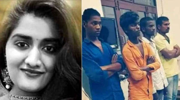 ஹைதராபாத்தை சேர்ந்த கால்நடை மருத்துவர் பிரியங்கா ரெட்டி கடந்த மாதம் ப லாத் காரம் செய்து எ ரித்து கொ லை செய்யப்பட்டார். இந்த வழக்கில் முகமது பாஷா, நவீன், ஷிவா, சின்னகேசவலு ஆகிய நால்வர் கைது செய்யப்பட்ட நிலையில் கடந்த 6ஆம் திகதி என்கவுண்டரில் சு ட்டு கொ ல்லப்பட்டனர்.
