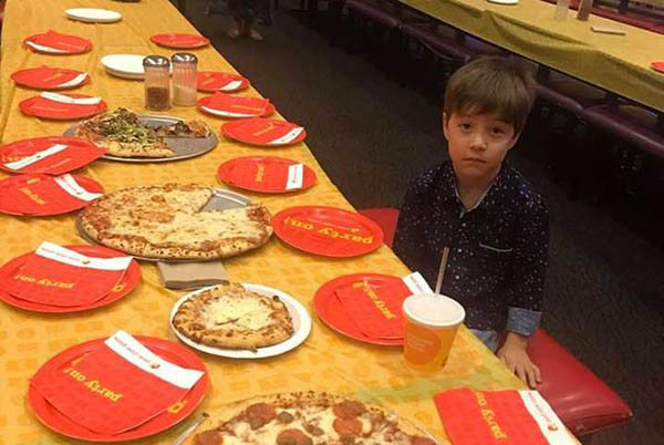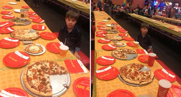 ஆனால் பிறந்தநாள் கொண்டாடப்பட்ட அன்று யாருமே விழாவிற்கு வருகை தரவில்லை. இதனால் அந்த சிறுவன் பீட்சாவால் நிறைந்திருக்கும் இரண்டு நீளமான மேஜைகளுக்கு மத்தியில் மனமுடைந்த நிலையில் காணப்பட்டான்.