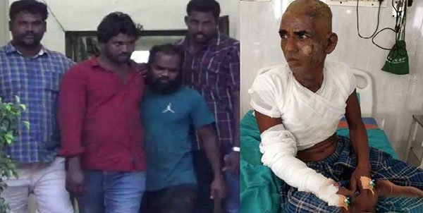 இதில் பீடியிலிருந்த தீ மூலம் உடலில் தீப்பிடித்துள்ளது. இதைப்பார்த்த விஜயராஜாவும் கோவிந்தராஜும் அங்கிருந்து ஆட்டோவில் தப்பியுள்ளனர். இந்நிலையில் இருவரையும் கைது செய்த பொலிசார் சிறையில் அடைத்துள்ளனர்.
