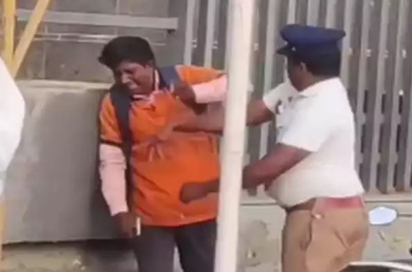 பெண்ணை இடித்துவிட்டு நிற்காமல் சென்ற தனியார் பள்ளி வாகனம் : தட்டிக்கேட்ட ஊழியைரை தாக்கிய போலீஸ்!!
