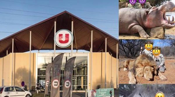 அந்த தம்பதி தாங்கள் வேட்டையாடிக் கொன்ற ஒரு நீர் யானை, வரிக்குதிரை, சிறுத்தை மற்றும் சிங்கம் ஒன்றின் அருகில் அமர்ந்து போஸ் கொடுத்திருந்தனர்.