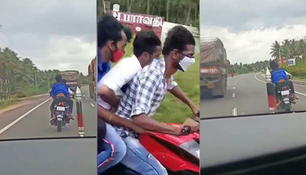 பைக்கில் சென்ற பெண்ணிடம் செயினை பறித்து விட்டு தப்பிச் சென்ற இளைஞர்கள்: வைரல் வீடியோ !!