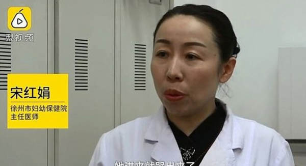 அங்கு பரிசோதனை செய்த மருத்துவர் சாங் ஹாங்காஜான், பலவீனமான துணை திசுக்களால் அவருடைய கருப்பை பாதிக்கபட்டு வெளியில் விழுந்திருப்பதாக கூறியுள்ளார்.