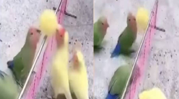 அப்படி, இணையத்தில் ஒரு வீடியோ காட்சி பெரும் வைரலாகி வருகிறது. இது குறித்த வீடியோ காட்சியில், இரண்டு கிளி பறவைகள் வாலிபால் விளையாடுகிறது. மஞ்சள் மற்றும் பச்சை நிற கிளிகள் இரண்டு அணிகளாகப் பிரிந்துள்ளது.