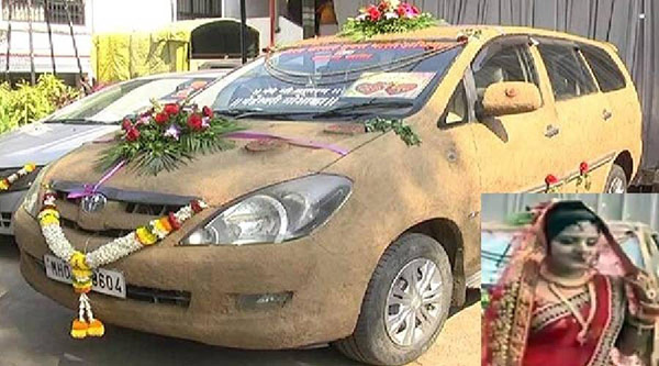 மகாராஷ்டிரா மாநிலத்தை சேர்ந்த நவ்நாத் டுதா என்கிற மருத்துவர், தன்னுடைய மகளின் திருமண காரை மாட்டு சாணத்தால் அலங்கரித்துள்ளார். அங்கு வந்திருந்த உறவினர்கள் அனைவரும் இதனை பார்த்து ஆச்சர்யமடைந்துள்ளனர்.
