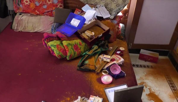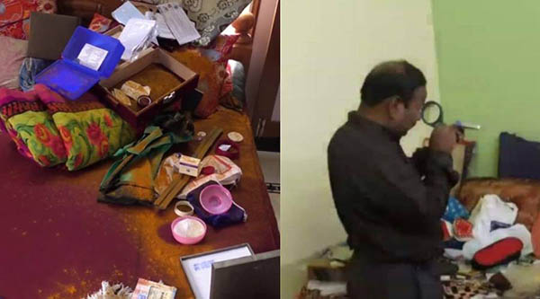 நகை மற்றும் பணத்தை கொ ள்ளையடித்த ம ர்மந பர்கள் வீடு முழுவதும் மிளகாய் பொடி தூவிவிட்டு சென்றுள்ளனர். சரவணன் வைத்திருந்த பழைய தங்க நகைகள் மற்றும் மகளுக்கு சீராக கொடுக்க வைத்திருந்த நகைகள் என அனைத்தும் தி ருடு போனதாக தெரியவந்துள்ளது.