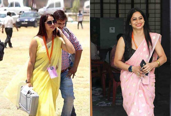 கடந்த மே 5 அன்று நாடாளுமன்ற தேர்தலில் பத்திரிகையாளர் ஒருவர் தேர்தல் அதிகாரி ரீனா திவேதி படங்களை சமூக ஊடகங்களில் வெளியிட்ட நிலையில் அது வைரலானது.
