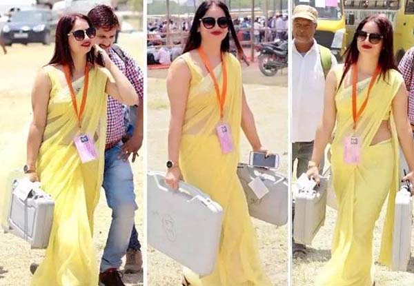 இந்தியாவில் பெண் தேர்தல் அதிகாரி பிங்க் நிற சேலையில் வந்ததை சிலர் புகைப்படமெடுத்து சமூக வலைதளங்களில் பதிவு செய்த நிலையில் படங்கள் தற்போது இணையத்தில் வைரலாகியுள்ளன.