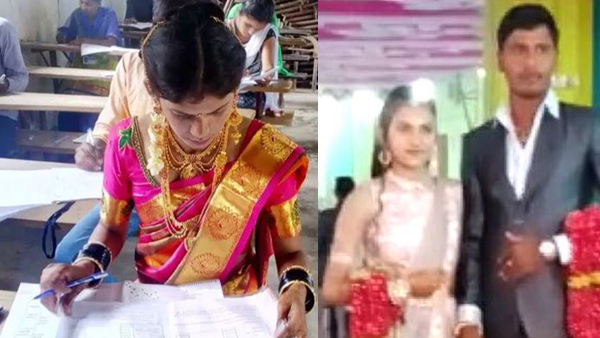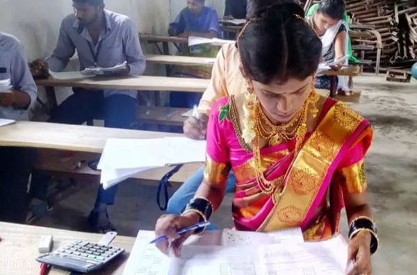 இந்தியாவின் கர்நாடக மாநிலத்தில் திருமணம் முடிந்த கையோடு தேர்வு எழுதிய புதுமணப்பெண்ணுக்கு பாராட்டுக்கள் குவிந்து வருகின்றன.