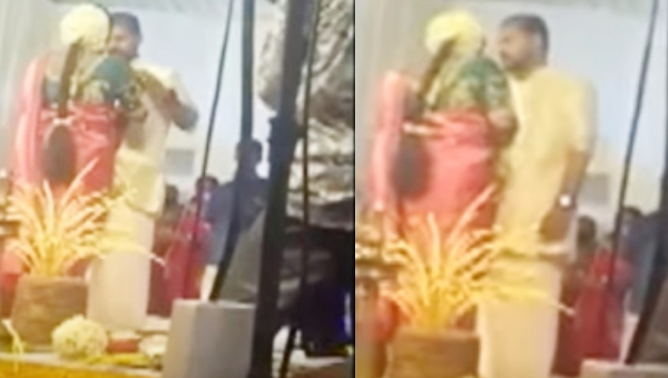 மணமகன் மாலையை எடுத்து மணமகளுக்கு அணிவிக்க போனார். திடீரென மாப்பிள்ளையை மணப்பெண் தடுத்து நிறுத்தி மணமேடையில் இருந்து கீழே இறங்கி ஓடிவிட்டார். உறவினர்கள், குடும்பத்தினர் எதுவும் புரியாமல் மணமகளை தடுத்து நிறுத்த முயன்றனர்.