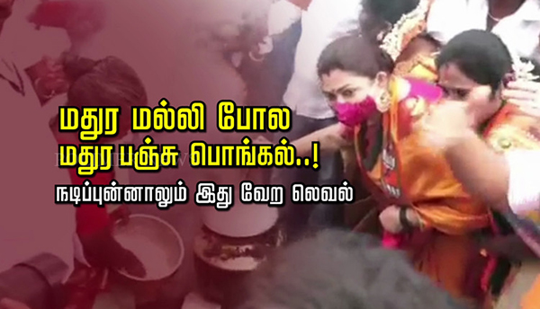 மதுரையில் பாரதிய ஜனதா மகளிர் அணியினர் சர்க்கரை பொங்கலுக்கு பதிலாக பஞ்சு பொங்கலிட்ட வினோத சம்பவம் அரங்கேறியுள்ளது. பாக்கெட்டில் உள்ள மஞ்சள் பொடியை அம்மியில் கொட்டி அரைத்த அட்ராசிட்டி பொங்கல் குறித்து விவரிக்கின்றது இந்த செய்தி தொகுப்பு