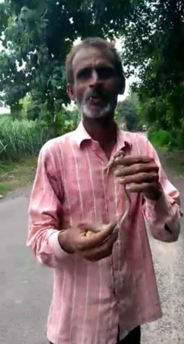 நேற்று அளவுக்கு அதிகமான மது போதையில் இருந்த மஹிபால், சாலை ஓரத்தில் சென்றுகொண்டிருந்த குட்டி பாம்பு ஒன்றினை பிடித்து சாப்பிட ஆரம்பித்தார்.