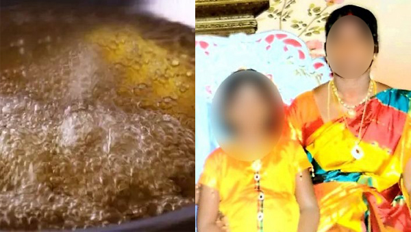 இதில் வலி தாங்க முடியாமல் அவர் துடித்துள்ளார். இதைப்பார்த்த மகள் தாயைக் காப்பாற்ற முயன்றபோது அவர் மீதும் கொதிக்கும் எண்ணெய்யை ஊற்றியுள்ளார்.