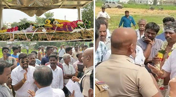 இதனால் இது குறித்த தகவல் அறிந்து சம்பவ இடத்திற்கு விரைந்த வந்த அதிகாரிகள் மற்றும் காவல்துறையினர சடலத்துடன் புதைக்க வந்த உறவினர்களிடம் பேச்சு வார்த்தை நடத்தினர்.