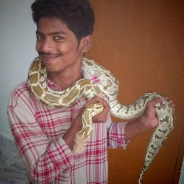 மோசஸ், மலைப்பாம்பின் குட்டியை தனது நண்பன் கழுத்தில் போட்ட புகைப்படத்தை பேஸ்புக் மற்றும் வாட்ஸ் ஆப் ஆகிய சமூக வலைதளங்களில் பதிவிட்டுள்ளார்.
