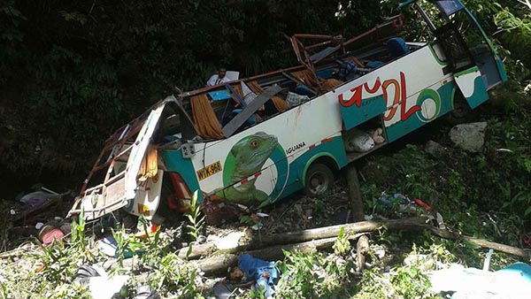 Quispicanchi மாகாணத்தில் இவ்விபத்து நிகழ்ந்தள்ளது. அமேசான் மழைக்காடு நகரமான Puerto Maldonado-ல் இருந்து highland நகரமான Cusco-க்கு சென்று கொண்டிருந்த பேருந்து, செவ்வாய்க்கிழமை விடியற்காலையில் விபத்துக்குள்ளாகியுள்ளது.