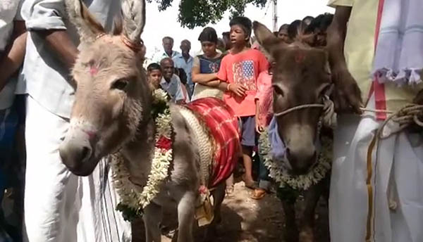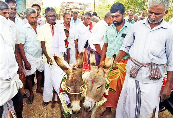 மழை வேண்டி கழுதைகளுக்கு கல்யாணம் : தமிழகத்தில் நடந்த வினோதம்!!