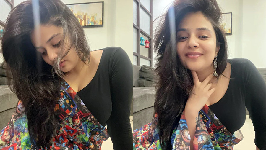இந்நிலையில், தற்போது புடவை அணிந்து கொஞ்சம் கீழ் வரை இழுத்துவிட்டு புகைப்படங்கள் சிலதை வெளியிட்டுள்ளார். இதனை பார்த்த இளசுகள் “சந்து பொந்து வீடு, நீ பந்து விளையாடு..” என கமெண்ட் செய்து வருகிறார்கள்.