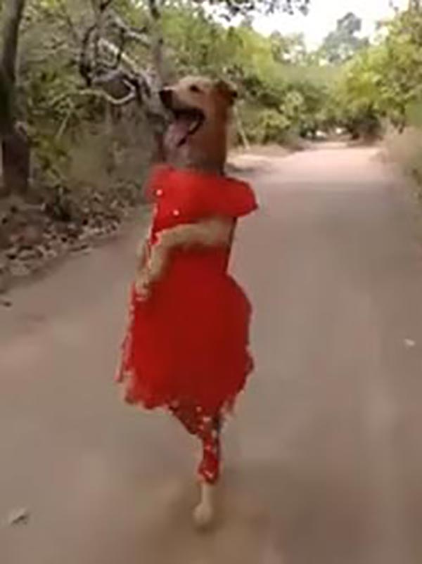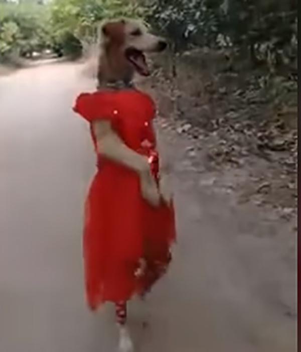 மார்டன் உடையில் நடந்து செல்லும் நாய் ஒன்றுன் காணொளிகள் இணையத்தில் வைரலாகி வருகின்றது.