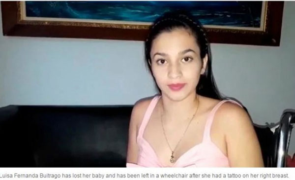 கொலம்பியாவில் 16 வயது இளம் பெண் ஒருவர் மார்பகத்தில் பச்சை குத்தியதால், அதன் பாதிப்பு காரணமாக தன்னுடைய குழந்தையை இழந்து தவிக்கிறார். கொலாம்பியாவின் Casanare மாகாணத்தை சேர்ந்தவர் Luisa Fernanda(16). இவர் ஒரு வருடங்களுக்கு முன்பு தன்னுடைய வலது மார்பகத்தில் பச்சை குத்தியுள்ளார்.