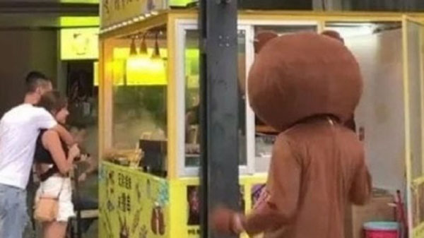 சீனாவைச் சேர்ந்த இளைஞன் ஜப்பானில் இருக்கும் தன் காதலிக்கு சர்பிரைஸ் கொடுப்பதற்காக சுமார் 2,400 கி.மீட்டர் பயணம் செய்து கரடி உடையணிந்து சென்றுள்ளார். அப்போது அவர் கண்ட காட்சி அதிர்ச்சியை அளித்துள்ளது.