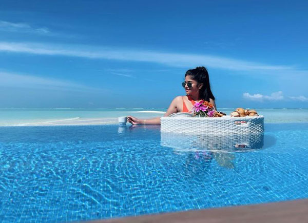 அங்கே நீச்சல் உடையில் எடுத்துக்கொண்ட புகைப்படங்களை பதிவிட்டு ரசிகர்களின் தங்களுக்கு குளுகுளு கவர்ச்சி விருந்து வைத்திருக்கிறார். இந்த புகைப்படங்கள் இணையத்தில் வைரலாகி வருகின்றது.
