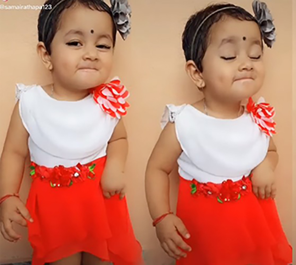 திரைப்பட பாடல்களுக்கு தனது வாய் அசைக்கும் கு ழந்தை அப்படியே பாடலை பாடுவது போல் பா வனை செ ய்து அசத்துகிறது.