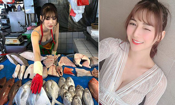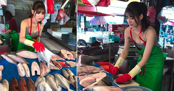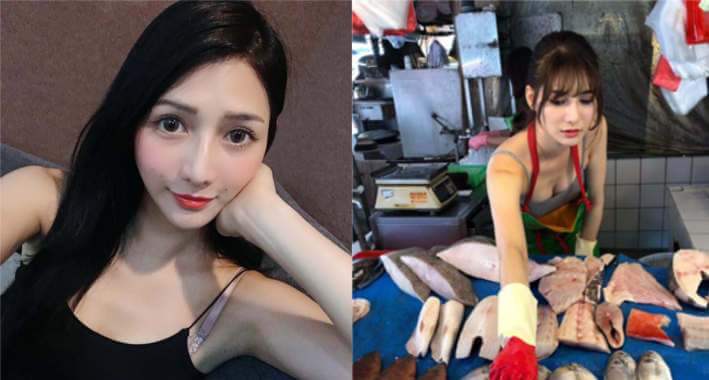தைவான் நாட்டில் அழகான இளம்பெண் ஒருவர் மீன் விற்பனை செய்யும் புகைப்படம் ஒன்று இணையத்தை ஆக்கிரமித்து வருகிறது.