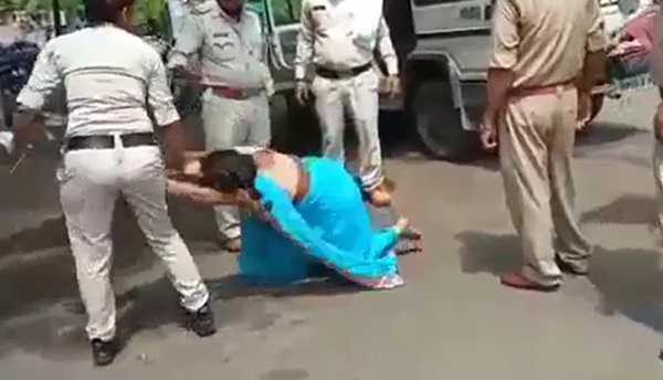 ஆனால் காவல்துறை வாகனத்தில் ஏறுவதற்கு பெ.ண் பி.டி.வா.தமாக மறுத்ததால், அவரது தலை முடியை பெண்,