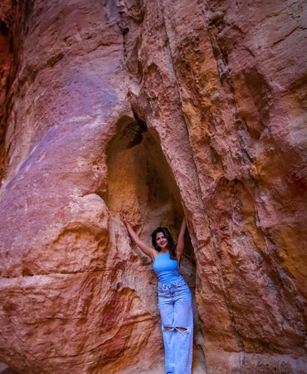 தன்னுடைய பின்னழகை தன்னுடைய பிரதானமான கவர்ச்சி பாகமாக கருதும் இவர் தன்னுடைய பின்னழகு எடுப்பாக தெரியும் விதமான கவர்ச்சியான உடைகளை தேர்வுசெய்து அணிகிறார். தமிழ் படம் 2 என்ற படத்தில் நடித்து ஒட்டுமொத்த தமிழ்சினிமா ரசிகர்கள் மத்தியிலும் ஆழமான இடத்தை பிடித்தவர்.