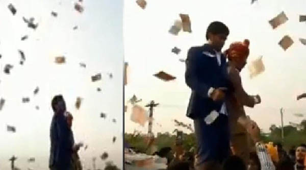 அப்போது, மணமகனின் நண்பர்களும் குடும்ப உறுப்பினர்களும் பொதுவில் ரூ .500 மற்றும் ரூ .2,000 நாணயத்தாள்களைப் பொழிந்தனர்.