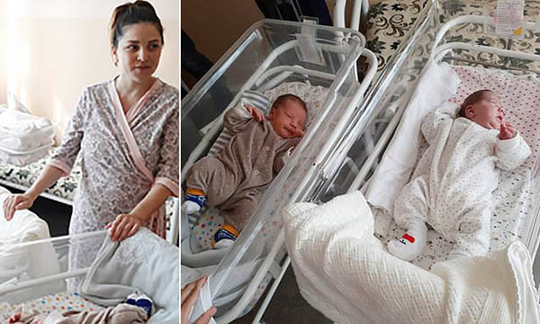 இரட்டைக் குழந்தைகளை கர்ப்பத்தில் சுமந்த கசகஸ்தானைச் சேர்ந்த Liliya Konovalova (29), 11 வாரங்கள் வித்தியாசத்தில் தனது குழந்தைகள் இரண்டையும் பெற்றெடுத்தார்.