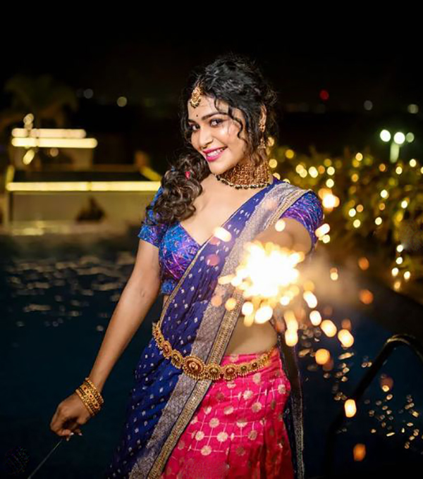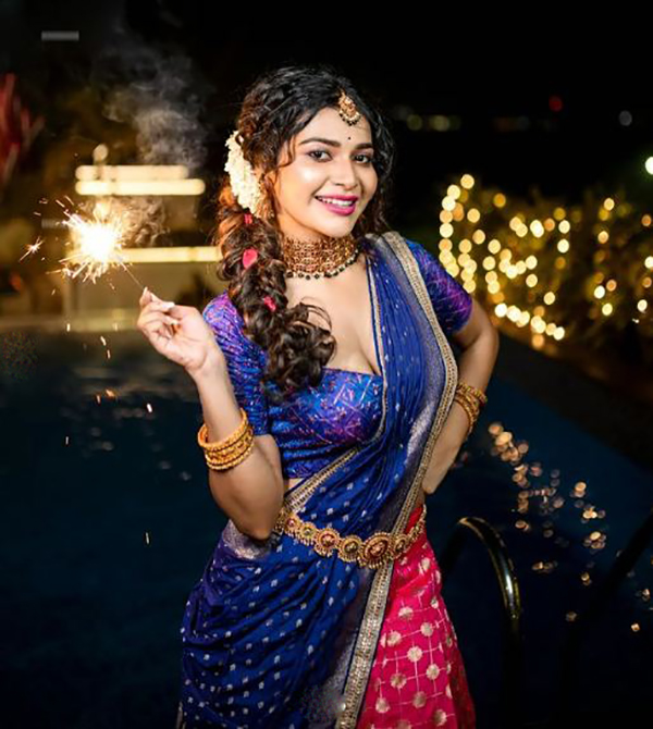 அந்த படம் மக்களிடையே சுமாரான வெற்றியை பெற்றது. தற்போது பட வாய்ப்புகளுக்காக மாடர்ன் உடை அணிந்து ரசிகர்களை ஈர்த்து வருகிறார் அந்தவகையில் தற்போது தீபாவளி கொண்டாடும் விதமாக முன்னழகு எடுப்பாக தெரிய கவர்ச்சி போஸ் கொடுத்து போட்டோஷூட் நடத்தி ரசிகர்களை சூடேற்றியுளார் அம்மணி .