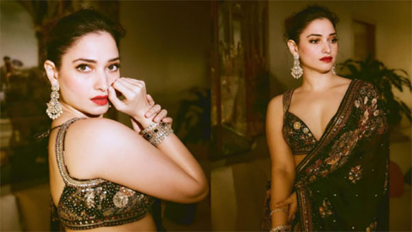 தகதக மேனிக்கு சொந்தக்காரியான தமன்னா இந்த ஆண்டு ரஜினிகாந்தின் செயலர் படத்தில் இடம்பெற்ற காவலா பாடலுக்கு கவர்ச்சி உடையில் ஆட்டம் போட்டு ஒட்டுமொத்த ரசிகர்களையும் கிழங்க அடித்தார். இந்நிலையில் தற்போது, இன்ஸ்டாகிராம் பக்கத்தில் படு ராயல் சேலை ஒன்றை கட்டிக் கொண்டு அதில் திரும்பியபடி நின்று இடுப்பழகு எடுப்பாக தெரியும்படி போஸ் கொடுத்து இளைஞர்களின் தூக்கத்தை கெடுத்துள்ளார்.