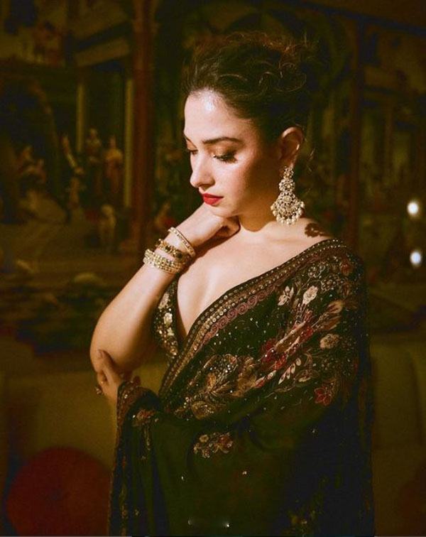 தகதக மேனிக்கு சொந்தக்காரியான தமன்னா இந்த ஆண்டு ரஜினிகாந்தின் செயலர் படத்தில் இடம்பெற்ற காவலா பாடலுக்கு கவர்ச்சி உடையில் ஆட்டம் போட்டு ஒட்டுமொத்த ரசிகர்களையும் கிழங்க அடித்தார். இந்நிலையில் தற்போது, இன்ஸ்டாகிராம் பக்கத்தில் படு ராயல் சேலை ஒன்றை கட்டிக் கொண்டு அதில் திரும்பியபடி நின்று இடுப்பழகு எடுப்பாக தெரியும்படி போஸ் கொடுத்து இளைஞர்களின் தூக்கத்தை கெடுத்துள்ளார்.