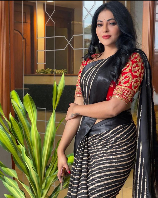 அதிலும், புடவை அணிந்து இடுப்பை காட்டி அவர் பகிர்ந்து வரும் புகைப்படங்கள் இன்ஸ்டாகிராமில் நெட்டிசன்களை கிறங்கடித்து வருகிறது. இந்நிலையில், கருப்பு நிற புடவையில் கட்டழகை காட்டி அவர் போஸ் கொடுத்துள்ள புகைப்படங்கள் இணையத்தில் வைரலாகி வருகிறது.