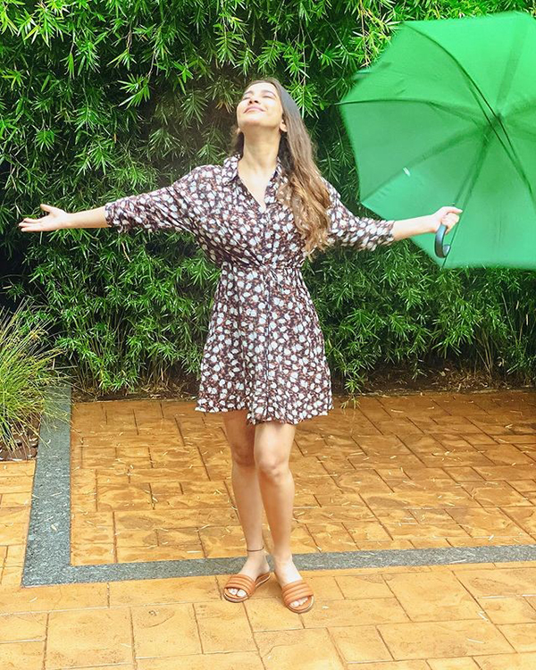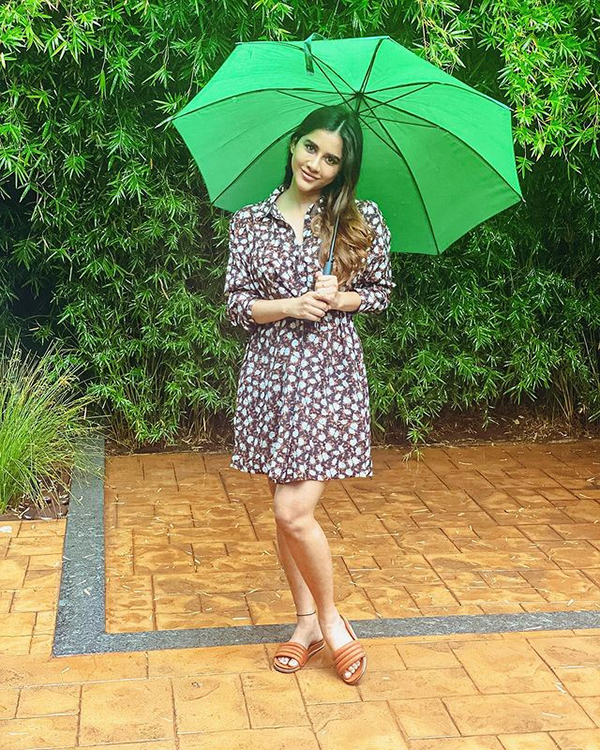 இந்நிலையில், குட்டை கவுனை அணிந்து கொண்டு கையில் குடையை பிடித்துக்கொண்டு போஸ் கொடுத்த புகைப்படங்கள இன்ஸ்டாகிராமில் பகிர்ந்து ரசிகர்களை தவிக்கவிட்டுள்ளார்.