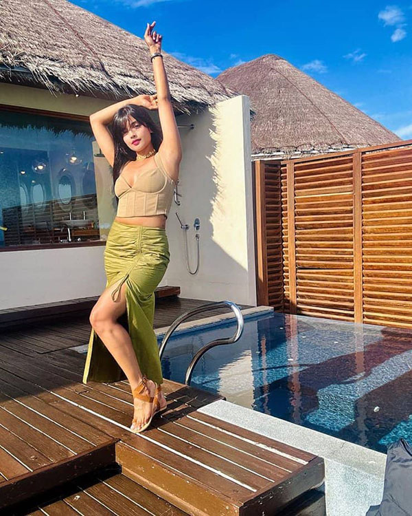 இவர் நடித்த 5 படங்களுமே சரியாக போகவில்லை. இதனால் கவர்ச்சி ரூட்டில் இறங்கினார். அதற்கு நல்ல பலன் கிடைத்தது. தொடர்ந்து கவர்ச்சி ரூட்டில் பயணிக்க தொடங்கிய இவர் அடிக்கடி தன்னுடைய இன்ஸ்டாகிராம் பக்கத்தில் ரசிகர்களை சூடேற்றும் வகையில் கவர்ச்சி புகைப்படங்களை, வீடியோக்களை அப்லோட் செய்து வருகிறார்.