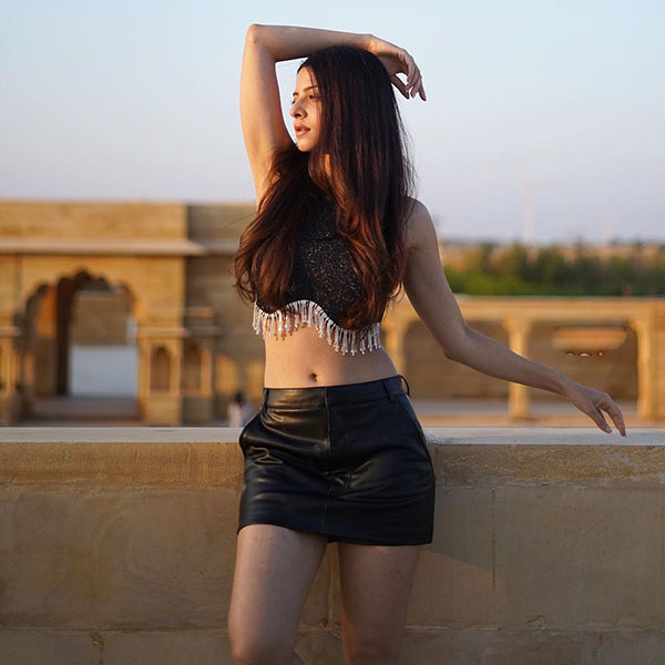 தற்போது கடற்கரை பகுதியில் இருக்கும் ஒரு பங்களாவின் மொட்டைமாடி சுவரில் டூபீஸ் ஆடையில் உட்கார்ந்தபடி எடுத்த புகைப்படத்தை பகிர்ந்துள்ளார்.