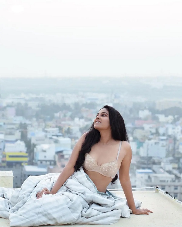 சமீபகாலமாக சமூக வலை தளங்களில் ஆக்டிவாக இருக்கும் சாந்தினி தன்னுடைய கவர்ச்சி புகைப்படங்களை என்றாலும் பதிவிட்டு வருகிறார். அந்த வகையில் தற்போது, வெறும் ப்ரா மட்டும் அணிந்து கொண்டு மொட்டை மாடியில் அமர்ந்து இருக்கும் புகைப்படம் சிலவற்றை வெளியிட்டு ரசிகர்களின் கவனத்தை ஈர்த்திருக்கிறார்.