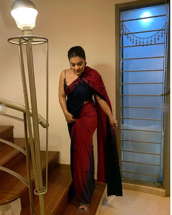 அழகான இந்த காதல் தம்பதிக்கு ஒரு மகளும், மகனும் உள்ளனர். தற்போது Half Sleeveles Saree போட்டுக்கிட்டு முதுகு அழகு முழுவதும் தெரியும் படியாக கஜோல்