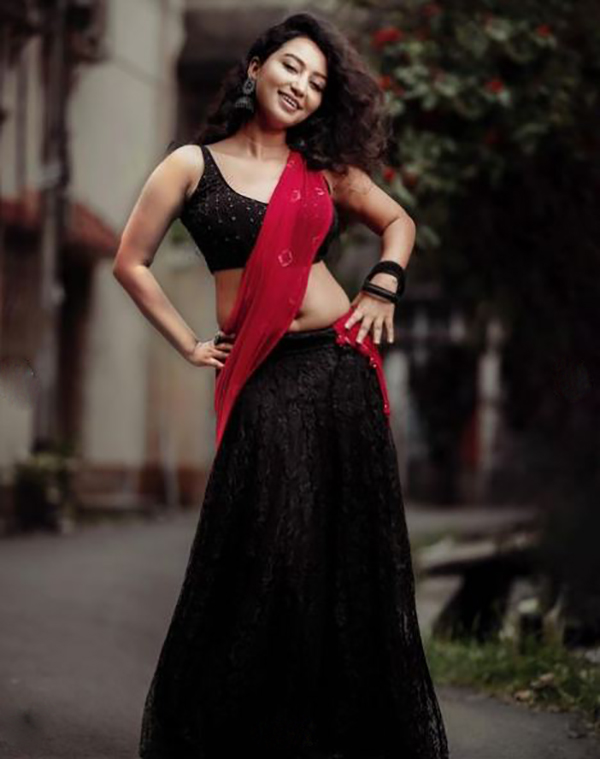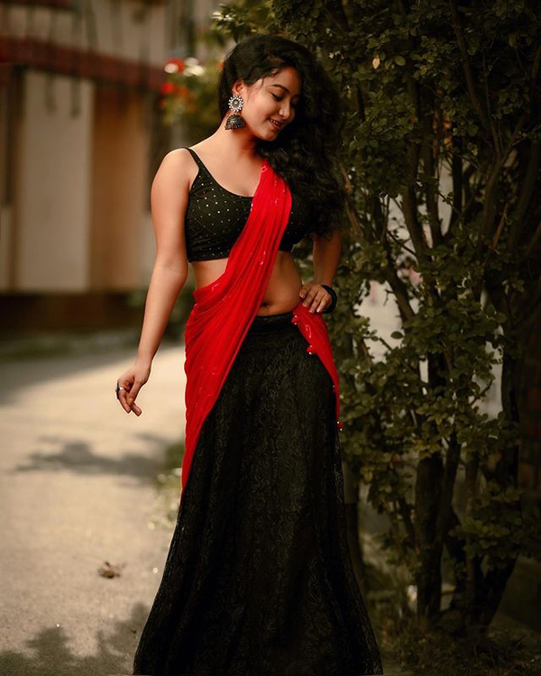 இந்நிலையில், தாவணி பாவடையில் மாராப்பை விலக்கி விட்டும், இடுப்பை காட்டியும் அவர் வெளியிட்டுள்ள புகைப்படங்கள் ரசிகர்களை அதிர வைத்துள்ளது.