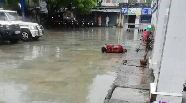 பீகார், சிவான் மா வட்டத்திலுள்ள சடார் மரு த்துவமனை யில் அ வசர சி கிச் சை வார்டுக்கு முன்பாக மழையில் நனைந்தபடியே, பெண் ஒருவர் தரையிலே கிடந்தார்.