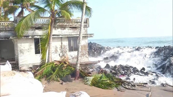 இந்நிலையில் தி டீரென ரா ட்சத அலைகளுடன் கி ராமத்திற்குள் கடல்நீர் புகுந்தது, இதில் 100க்கும் மேற்பட்ட வீடுகள் நீரில் மி தந்தன.