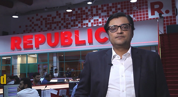 2018ஆம் ஆண்டு 53 வ யதான ந பதை த ற் கொ லைக்கு தூ ண் டிய வ ழ க்கி ல் அர்னாப் கோஸ்வாமி கை து செ ய் ய ப்ப ட் டு ள் ளதா க பொ லி சார் த கவ ல் தெ ரிவி த் து ள்ளனர்.